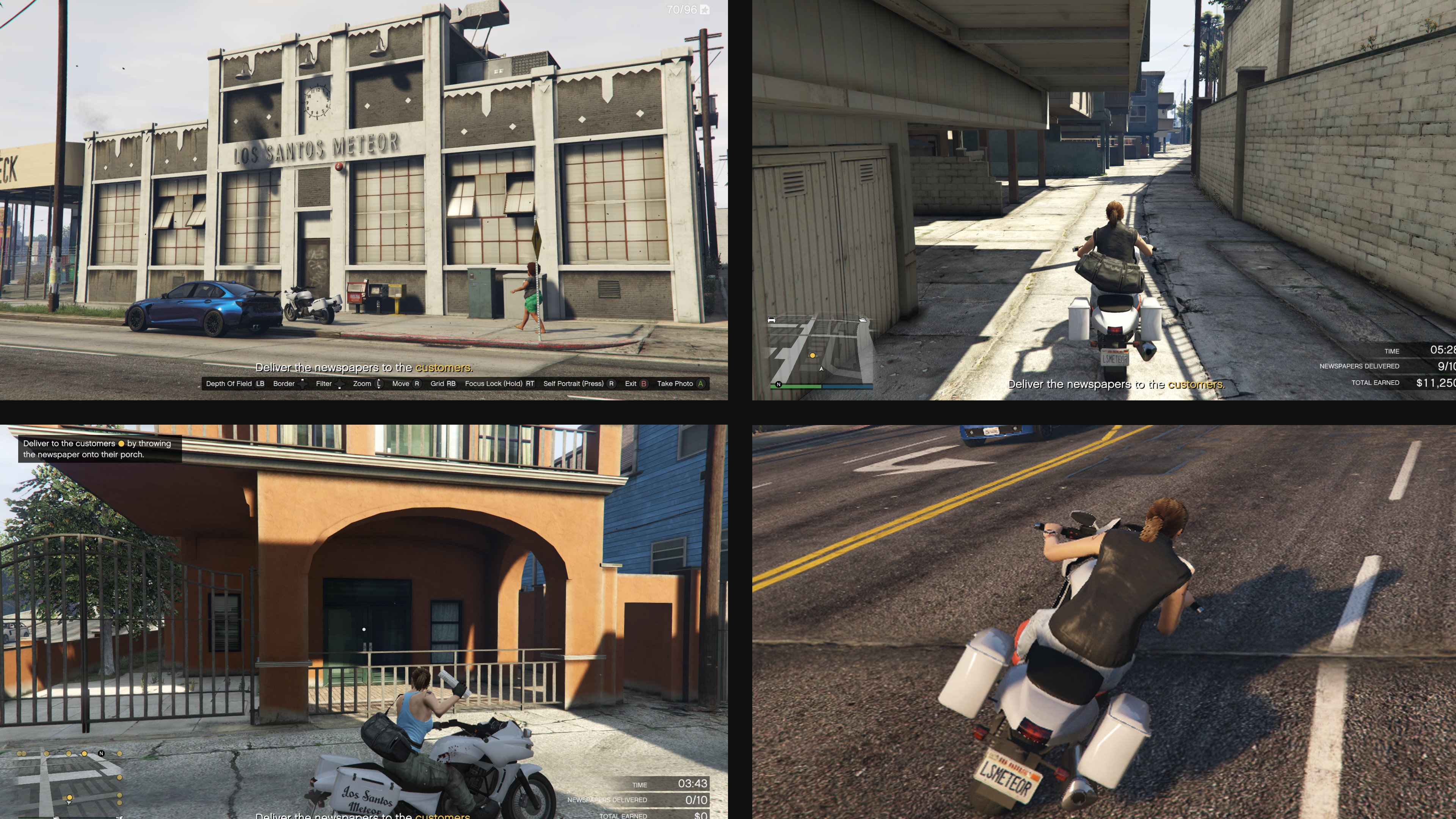 Newspaper Round (Los Santos Meteor) Yes, it's classic Paperboy gameplay, GTA-style! Probably the most fun of all the odd jobs, you can earn around $24,000 for 10 successful deliveries, with a bonus depending on how quick you are. You get given a Dinka Thrust motorcycle to do your round on, and the deliveries always seem to be in the city. As with some other delivery missions, you don't have to get off your bike and only have to lob the papers in the general direction of the recipient's front door to make a good delivery. In a rare departure from the norm, you don't actually have to use the supplied Dinka motorcycle, and can use any of your own vehicles–including your Oppressor MkII (although you'll have to hop off it to throw a newspaper.)